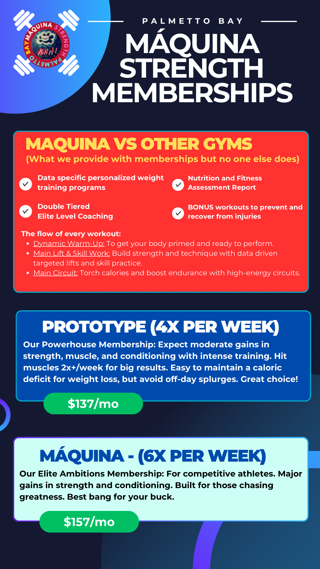 Join Máquina Strength’s 6-Week Fitness Revolution in Palmetto Bay! Build strength, lose fat sustainably, get a free Transformation Blueprint & community support. Transform your body—sign up now! ...more