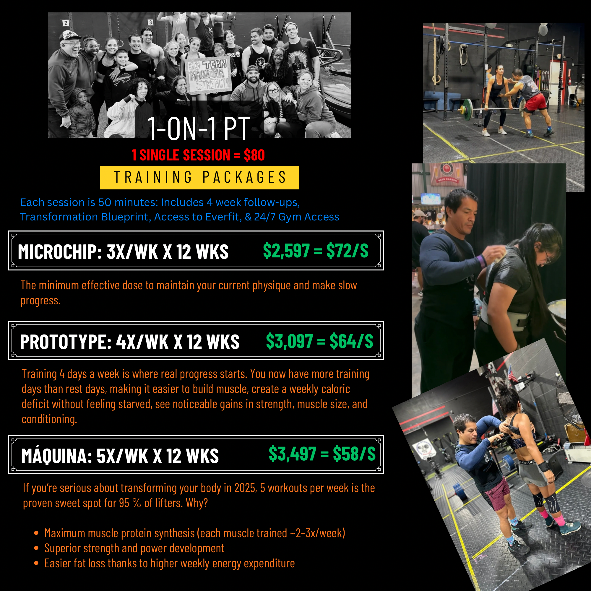 Maquina x 60 sessions – $3,497 = $58/session